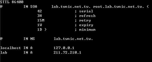 指名lab (服務外部網路的DNS伺服器)主機IP位址為211.72.210.1。