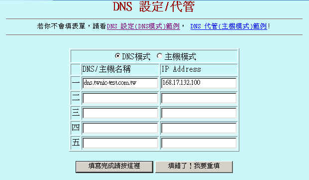 由於DNS server自行管理,所以必須讓上層DNS server知道負責此網域的DNS server,此步驟為指定負責所申請網域的DNS server